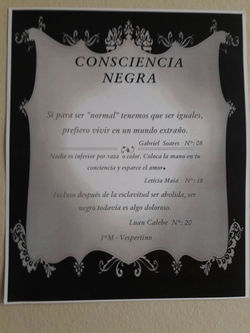 Às turmas foi solicitado que se reunissem em grupos e criassem frases em espanhol sobre a Consciência Negra.